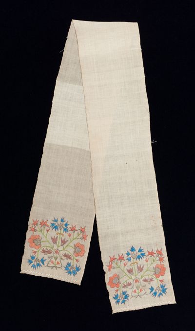 Anyag: | csalánszövet; színes selyemfonal |