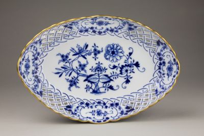 Ovális tál - Áttört díszítéssel, ún. hagymadekorral (12 személyes asztali készlet része)