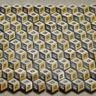 Az áttört falú kockát ábrázoló három- és hatszögletű csempék a reneszánsz kori perspektíva-tanulmányokat szemléltető geometrikus mintázatot alkotnak. A csempék oldallapjainak színei: kék, okker, fehér az áttörés belső élei zöld és okker színűek. A lapok és az áttörések élei mangánnal hangsúlyozottak. A perspektivikus ábrázolásmód a térbeliség illúzióját kelti, mintha a sötétmangán színű alap fölött sorakoznának az áttört kockák.