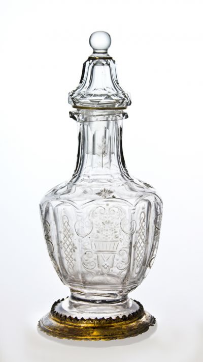 Egy analóg példány figyelembevételével Ignaz Preissler terve alapján készült cseh munkának tartjuk (České sklo 17. a 18. století: s uvodi expozicí stredovékého skla. Ed. Emanuel Poche. Praha, Umeleckoprumyslové muzeum, 1970, Nr. 164.)