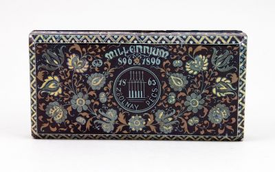 Jelzés: | tetején kettős körben öttornyos gyári jegy „ZSOLNAY / PÉCS / 1863” felirattal; fölötte MILLENIUM 896-1896 felirat |