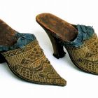 A felső rész lábfejhez közel eső részére világoskék vászon szövésű, húzott selyem szalagot varrtak két sorban. Magas fa sarkát barna bőrrel vonták be, a talprészen és a talp felé eső oldalán fémmel merevítették. A talp barna bőrből készült, felbolyhozott. A talpráma sötétebb színű bőr, fehér varrás tartja. A sarokrésznél sötétebb színű bélés.