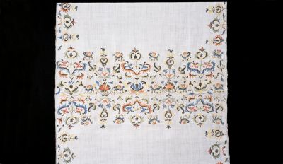 Technika: | mintásan letűzött fémfonalas hímzés; török lapos öltés |
