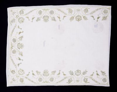 Anyag: | ezüstszínű fémfonal; selyemfonal; vászon |