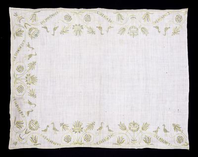 Anyag: | ezüstszínű fémfonal; selyemfonal; vászon |