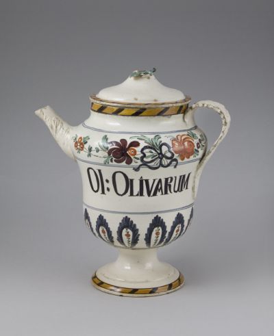 Patikaedény fedéllel - Ol: olivarum (olívaolaj) felirattal