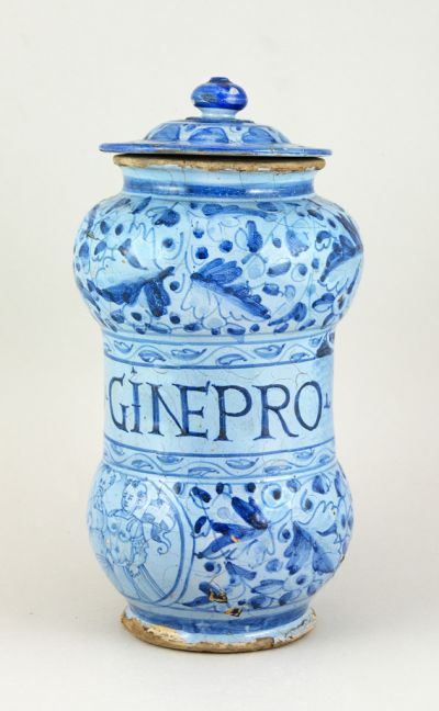 Patikaedény fedéllel - 'Olio di ginepro' (borókaolaj) felirattal