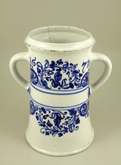 Technika: | fehér ónmázzal fedett; kékkel festett |
