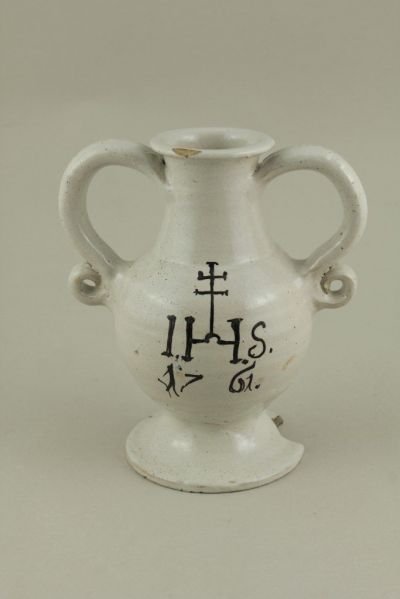 Technika: | fehér ónmázzal fedett; korongozott; nyers mázra fémoxiddal festett |