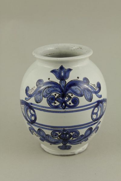 Technika: | fehér ónmázzal fedett; korongozott; nyers mázra fémoxiddal festett |