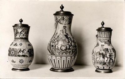 Fénykép - alvinci korsók, fajansz, fémfedél, XVIII. sz.