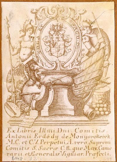 Fénykép - „ Ex libris Illmi Dni. Comitis / Antonii Erdődy de Monyorokerek / M. C. et C. V. Perpetui A. vero Supremi / Comitis S. Sacrae C. R. que May. Came / rarii et Generalis Vigiliar. Praefecti ”