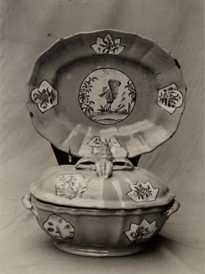 Fénykép - fedeles tál aljjal, fajansz, Holics, XVIII. sz.