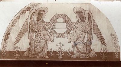 Fénykép - freskóterv, térdelő angyalok oldalnézetben, kezükben koszorú
