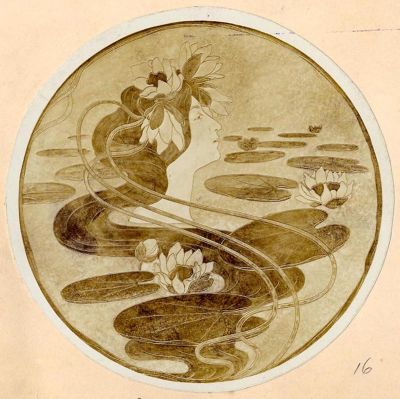 Fénykép - lámpatányér, vésett és színezett bőr, készítő W.Collin bőrdíszműves, Berlin