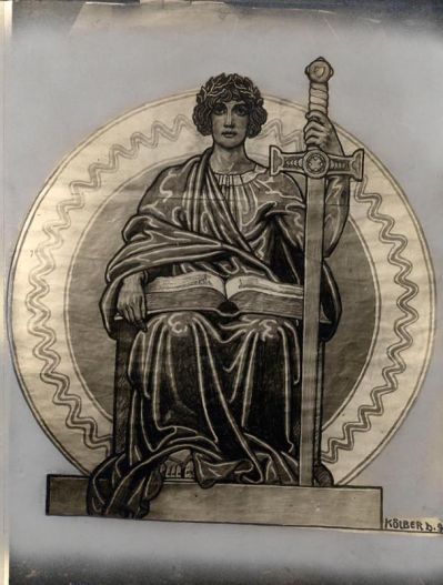 Fénykép - mozaik terve Iustitia alakjával, tervezte: Kölber Dezső