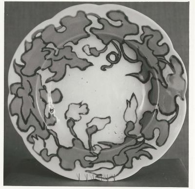 Műtárgyfotó - tányér, szecessziós virág, levéldíszítéssel, Rippl-Rónai József terve után, 1900 körül