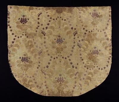 Anyag: | aranyszínű fémfonal; ezüstszínű fémfonal; pamut (feltehetően); selyem; zsenília |