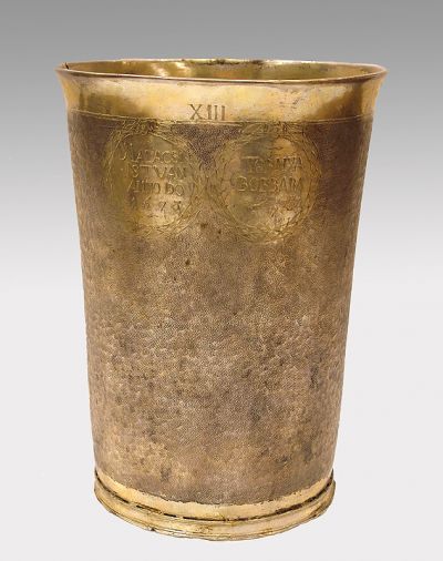 Pohár - cápázott díszítéssel, Naláczi István és Tornya Borbála címerével