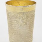 Szájperemén vésett II. szám, mely arra utal, hogy a pohár egy több darabból álló pohárkészlet része volt.
