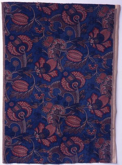 Mintája a 18. század elején, feltehetően Augsburgban nyomott, ún. bizarr stílusú, az indiai, színesen nyomott pamutok hatására készült vászonszövet másolata, melynek színvariánsát a szentpétervári Ermitázs őrzi. (Ld.: N. Biriukova: West European printed textiles, l6th-18th century. State Hermitage Collection. Moszkva, 1973, 34 tábla - Augsburg (?), 18. sz. eleje, T-4045).