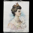 A szaténszövetre nyomott képecskéket a 20. század elején az 1899-ben New Yorkban alapított Nebo Cigarettes dohánygyár cigarettái mellé adták ajándékba, s egyfajta marketing-eszközként szolgáltak. Az uralkodókat, madarakat, országzászlókat stb. ábrázoló képecskék nagyobb sorozatokat alkottak, amelyek gyűjtése révén a termék megvásárlására ösztönözték a vevőket.
