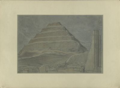 Rajz - a szakkarai Dzsószer piramis D-i oldala, a piramis kerület melléképületeinek romjaival