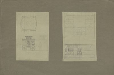 Rajz - díszítőmotívumok: díszszekér, kerub és bika ábrázolásokkal