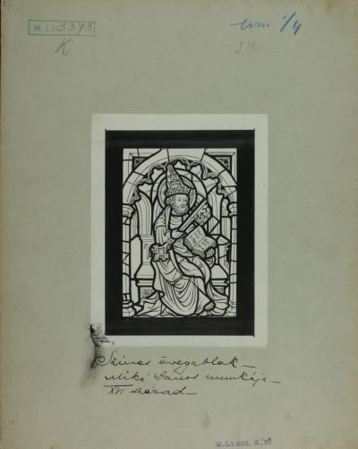 Rajz - Mikó Jánosnak tulajdonított 15. századi üvegablak Szent Péter alakjával a bécsújhelyi Stift Neukloster gyűjteményében
