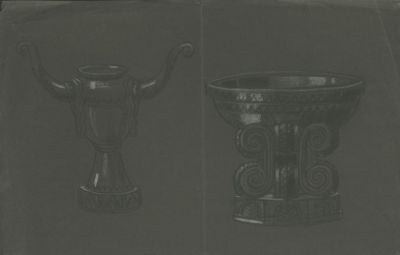 Rajz - szertartási edények ökörszarv alakú dísszel illetve ion oszlopfővel Salamon templomából