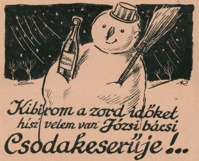 Reklámcédula - „ Kibírom a zord időket hisz' velem van Józsi bácsi csodakeserűje!”