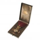 Rendjel - a Ferenc József Rend Koronás Arany Érdemkeresztje vörös szalagon