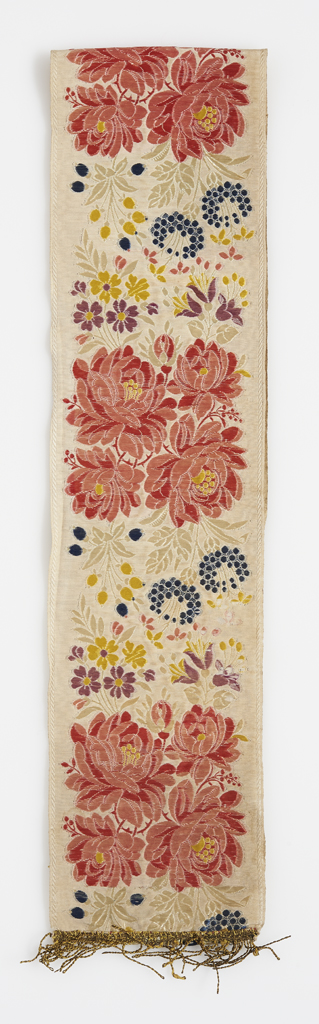 Technika: | jacquard szövés; paszománymunka; szalagszövés |