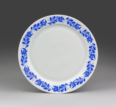 Kerek tál (nagyméretű, készlet része) - A Krisztina-202 asztali készlet része, kék színű, magyaros dekorral