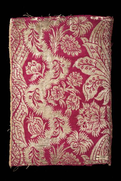 Anyag: | ezüst színű fémfonal; len vetülék; selyem láncfonal |