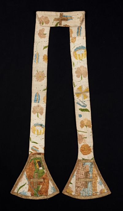 Anyag: | aranyszínű fémfonal; sodratlan selyemfonal; vászon |
