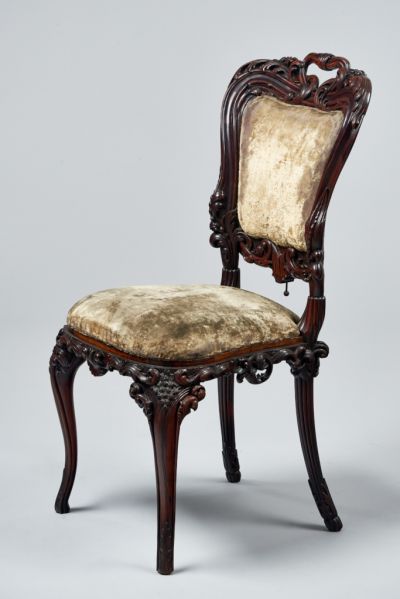 Kora-viktoriánus kori ízlést mutató, kontinentális rokokó elemeket feldolgozó berendezési tárgy.
