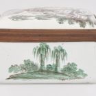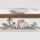 A hétéves háború (1757-1763) idején Poroszországban készült kézzel festett zománcszelencéken gyakran jelennek meg a korabeli hadeseményekre reflektáló ábrázolások, melyek a legfontosabb küzdelmek színhelyeit mutatják be, vagy a győzedelmes porosz uralkodó, II. (Nagy) Frigyes diadalkoszorúval övezett portréját és győzelmi trófeáit jelenítik meg. Az itt bemutatott szelence fedelén a háborút lezáró hubertusburgi békére utaló ábrázolás kapott helyet.