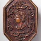Nyolcszögletű hasáb formájú, felnyitható fedéllel. Alján virágos, leveles keretben babérkoszorús férfiportré. Pereme tagozott, keskeny faragott sávval díszített. Felnyitható fedelén szárnyas angyalfők, virág-girlandok között ovális medalionban férfi profilképe.