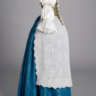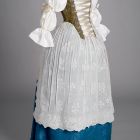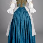 A viseletegyüttes szoknyáját feltehetően Itáliában szövött, nagyméretű virágtövekkel mintázott kék színű selyemdamaszt-szövetből szabták a sűrűn ráncolva viselt szoknya szövetének szélessége több mint 3 méter, "berakva" átmérője 80 cm. A világosabb árnyalatú, a szoknyáétól eltérő mintázatú kék szövetből készült ruhaderék aranyozott ezüstfonalból vert csipkével díszített, a fűzőkapcsok zománcozottak.