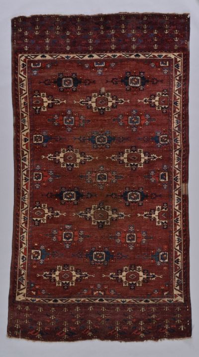 Magyarországon a türkmén nomád szőnyegek gyűjtése iránti érdeklődés már a 20. század első évtizedeiben kimutatható. Az Iparművészeti Múzeum korai, 1908 körüli ’ismeretlen eredetű’ szerzeményei közül való az itt bemutatott Jomut (Jomud) nomád főszőnyeg a 19. század első feléből.