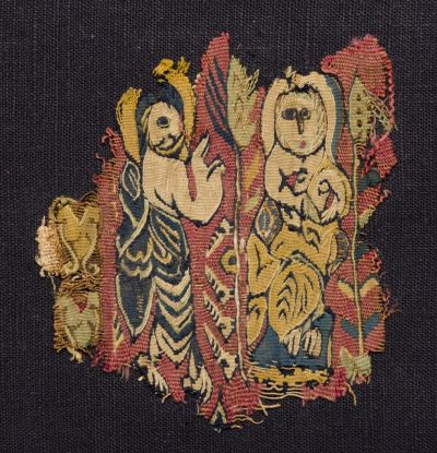 Az Angyali üdvözlet ábrázolása nem tartozik a kopt művészet szokásos témái közé. A ritkán előforduló képtípus ruhadíszként való felbukkanása mögött a töredékes kép minden esendősége ellenére, 7–8. századi konstantinápolyi, szíriai vagy palesztin előképek távoli hatását mutatták ki. Konstantinápolyi eredetű prototípus létezése mellett szól az Iparművészeti Múzeum szövetdarabja és a vatikáni Sancta Sanctorumban felfüggesztett késő 8. századi bizánci selyemszövet között kimutatott ikonográfiai kapcsolat.