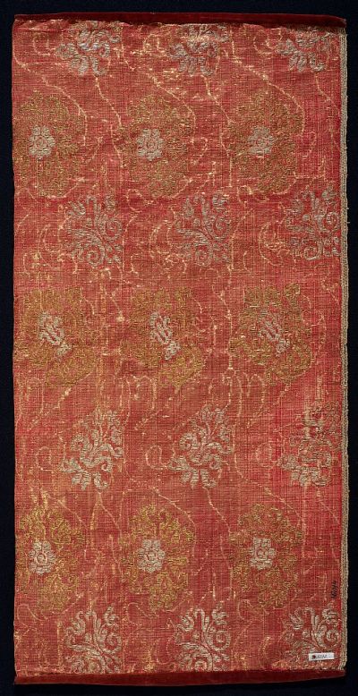 Technika: | arany- és ezüstfonallal lanszírozott; atlaszkötés; brosírozott |