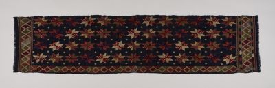 Technika: | mintázó vetülékfonallal díszített; palasz technikával szövött |