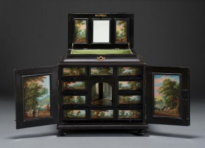 A spanyol fennhatóság alatt álló Flandriában a 17. század elején Antwerpen a festett kabinetszekrények készítésének fő központja. Az ajtókra, fedőlapokra és fiók-homloklapokra főleg a Van Kessel és a Franken testvérek, illetve követőik festették aprólékos precizitással képecskéiket.