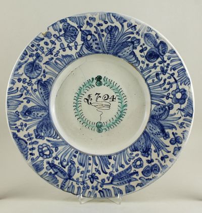 Technika: | fehér ónmázzal fedett; kékkel festett |