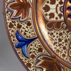 | Technika: | formába korongozott; kobaltoxiddal festett; ónmázas; rézlüszterrel festett |