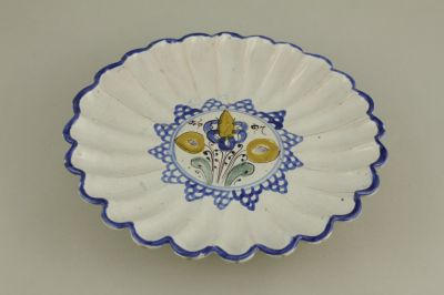 Technika: | ecsettel, szabadkézzel festett; fehér ónmázzal fedett; korongozott részekből összeállított; negatív formába kézzel préselt; nyers mázra fémoxidokkal festett |