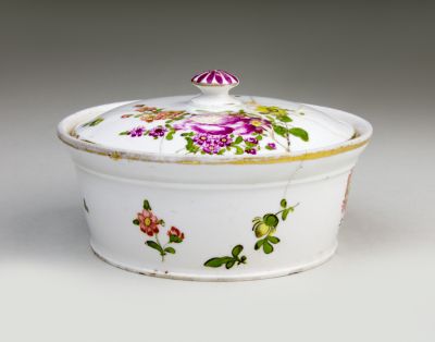 Jelzés: | alján, a masszába nyomva: 10; máz alatt kobaltkékkel festve: pajzsjegy; máz felett bíborlilával festve: 135 (?); máz felett feketével festve: 35. |