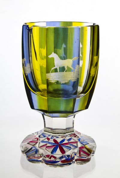 Talpas díszpohár - Gravírozott ló és kutya figurákkal